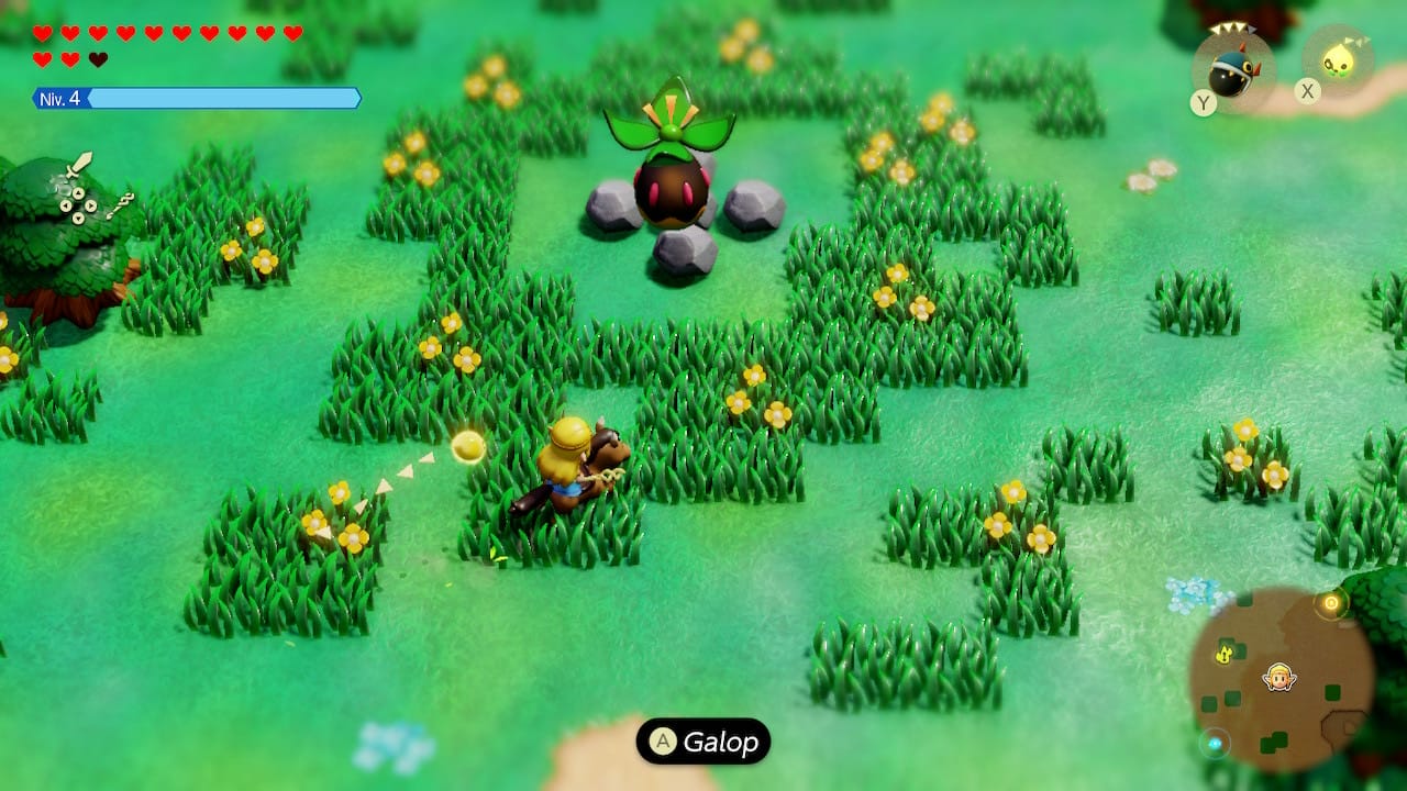 Hélas, Nintendo n'est toujours pas parvenu à refiler la martingale à Grezzo : le studio n'a pas résolu ses problèmes de ralentissement. Très visibles dans Link's Awakening, ils le sont aussi Echoes of Wisdom(vous pouvez y jeter un œil dans cette éclairante vidéo de Digital Foundry). Néanmoins, les ralentissements surviennent surtout dans le monde ouvert ; les donjons, plus ramassés, se parcourent habituellement à 60 FPS. Une bonne partie du jeu s'y déroulant, c'est moins gênant. Mais bon, vivement la Switch 2…