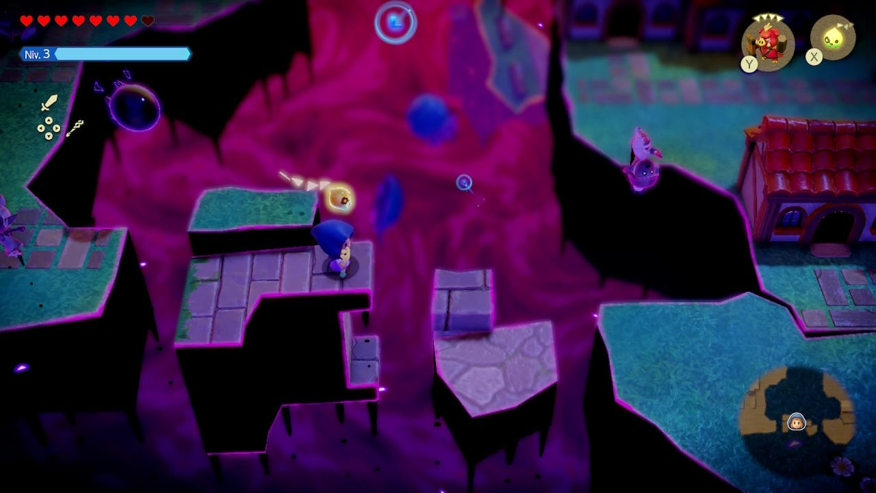 Cela fait des années que les fans réclamaient le retour d'un jeu Zelda en vue de haut. Ils ont été entendus : Echoes of Wisdom reprend la recette d'origine, avec toutefois une pincée de Zelda II — de nombreux passages sont à parcourir en 2D vue de côté. Le mélange, déjà à l'œuvre dans Link's Awakening bien sûr, est parfaitement fonctionnel et le passage de l'une à l'autre vue est rafraîchissant.