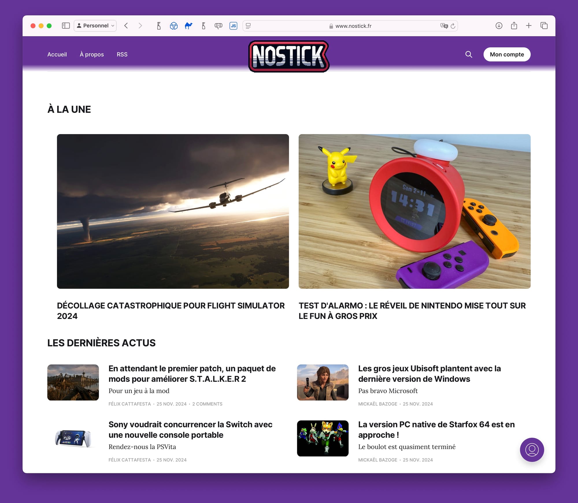 Si vous tombez sur cette actu, c'est que la redirection vers le nouveau Nostick est bien active (ouf) ! Votre site d'actus sur le jeu vidéo a en effet évolué à la faveur du week-end : non seulement l'interface a changé, mais aussi notre hébergement.