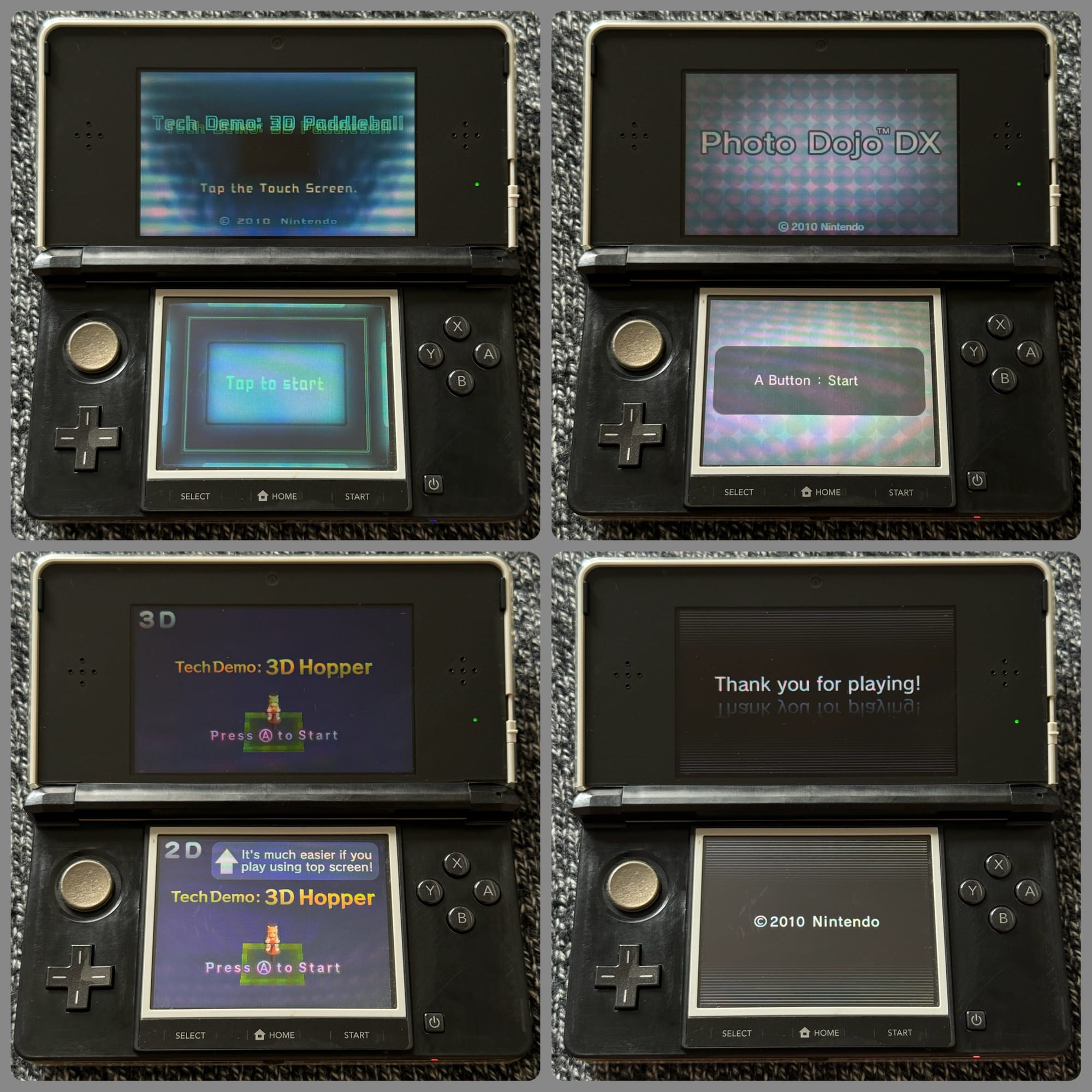 La douzaine de démos servent majoritairement à en mettre plein la vue : 3D Paddleball est un jeu de Pong en 3D, 3D Hopper est un mini-jeu de plateformes, Face Ace et Target Shooting ont été repris et intégrés dans le firmware de la console sous les noms Face Raiders et AR Games. Il y a même un prototype pas fini de Photo Dojo DX, suite du Photo Dojo du DSiWare.