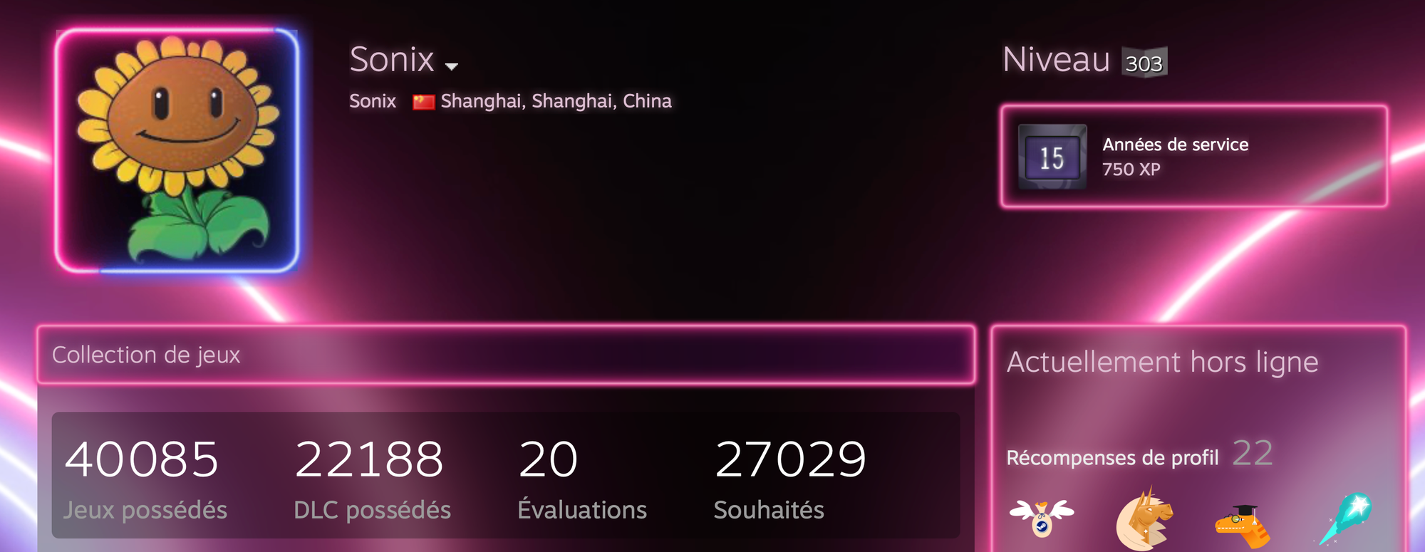 - Vous n’êtes pas peu fier de votre compte Steam à 300 jeux ? Petit joueur : un utilisateur chinois a récemment fait les gros titres pour avoir acheté… 40 000 titres en 15 ans. Il s’est donc vu accorder le badge « Game Collector », qu’il est le seul à avoir. Son compte vaut 250 000 $ selon SteamDB, et ce grand malade a déjà acheté 85 nouveaux jeux en une semaine. Belle perf’.