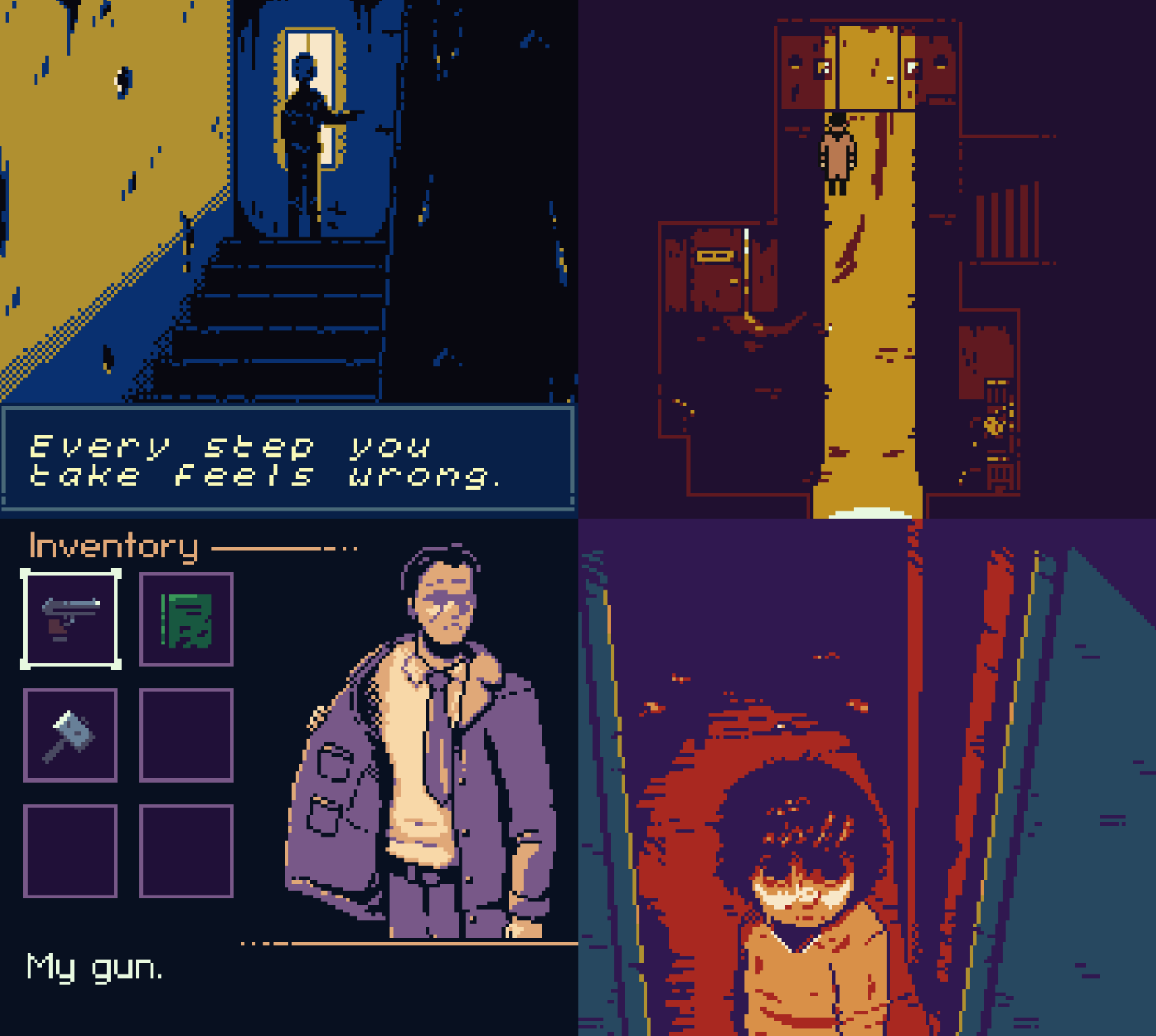 - Laissez-moi vous parler de The Melting Apartment, un jeu mélangeant habilement une histoire de détective et le style de Junji Ito. Ce jeu pour Game Boy (si, si) vous propose d'incarner un détective privé inspectant l'appartement d'une personne disparue, évidemment avec une ambiance lourde et bien glauque. Vous pouvez télécharger la ROM pour y jouer via émulateur (ou sur une Analogue Pocket, soyons fous), mais aussi simplement le lancer depuis votre navigateur. Le jeu se boucle en une vingtaine de minutes et mérite le détour pour ses graphismes vraiment sympa, regardez-moi ça :